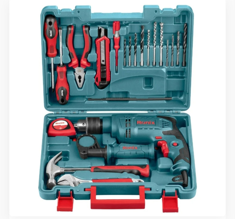 کیت کامل شامل انواع مختلف ابزارهای دستی به علاوه سری مته های رونیکس با سایز متفاوت - مجهز به کیف ضد ضربه - موتور ۶۵۰ واتی بسیار مقاوم برای بهترین کارایی در دریل کاری و دریل چکشی - سبک وزن و ارگونومیک مناسب برای تمامی کاربردها در متریال های متفاوت - سه نظام ۱۳ میلیمتری آچاری تمام فلزی برای کارایی حداکثری - نرخ ضربه بالا برای بهترین عملکرد در حالت دریل چکشی - دسته جانبی ارگونومی ۳۶۰ درجه که لرزش را به حداقل می رساند و اجازه کار بدون خستگی را برای کاربر فراهم میکند - طراحی ارگونومی و جمع و جور که نهایت قدرت را در کمترین وزن فراهم میکند - مجهز به سوییچ ضد غبار که نفوذ غبار را به حداقل می رساند - دارای دیمر برای کنترل سرعت مناسب در کاربری ها و متریال های متفاوت - دارای سوییچ چپ گرد و راستگرد